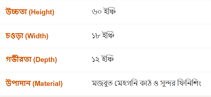 নিচে দুইটি তাক রয়েছে যেখানে জুতা, ঘড়ি, বই বা ভাজ করা কাপড় রাখা যায়।